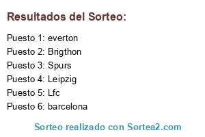 Lista de participantes: Lfc, everton, Leipzig, barcelona, Spurs, Brigthon.
