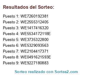Este sorteo ha sido certificado por Sortea2. Sortea2 garantiza que: