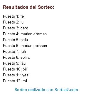 Lista de participantes: yesi, mili, fefi, belu, pili, lu, marian ehrman, lau, sofi c, caro, feli, marian poisson.