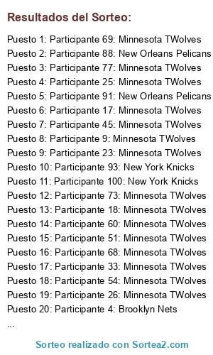 - Puesto 2: Participante 88: New Orleans Pelicans