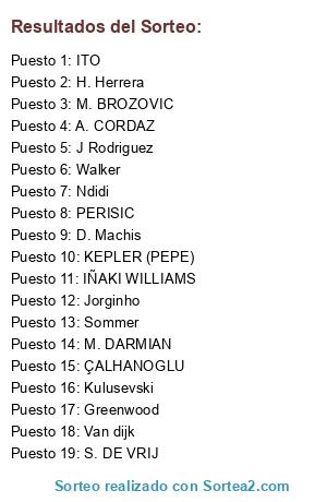 Lista de participantes: A. CORDAZ, Sommer, M. DARMIAN, S. DE VRIJ, KEPLER (PEPE), M. BROZOVIC, Kulusevski, Greenwood, PERISIC, ÇALHANOGLU, IÑAKI WILLIAMS, ITO, Van dijk, Walker, Ndidi, Jorginho, D. Machis, J Rodriguez, H. Herrera.