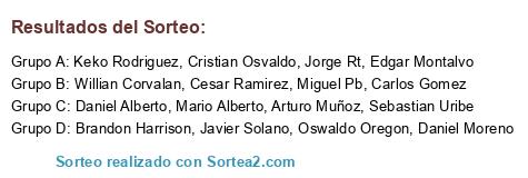 Lista de participantes: Willian Corvalan, Sebastian Uribe, Cristian Osvaldo, Javier Solano, Daniel Alberto, Carlos Gomez, Oswaldo Oregon, Miguel Pb, Jorge Rt, Brandon Harrison, Edgar Montalvo, Cesar Ramirez, Daniel Moreno, Mario Alberto, Keko Rodriguez, Arturo Muñoz.