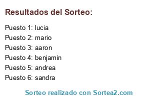 Lista de participantes: aaron, andrea, benjamin, lucia, mario, sandra.