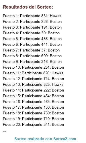 Lista de participantes: Boston (772), Portland (23), Pacers (21), Hawks (21).