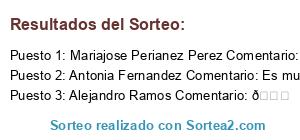 - Ganador: Mariajose Perianez Perez Comentario: Chulisimo