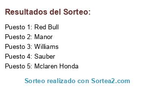 Lista de participantes: Mercedes AMG, Ferrari, Williams, Red Bull, Force India, Sauber, Toro Rosso, Lotus, Mclaren Honda, Manor.