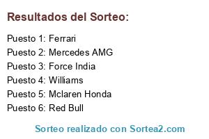Lista de participantes: Mercedes AMG, Ferrari, Williams, Red Bull, Force India, Toro Rosso, Sauber, Lotus, Mclaren Honda, Manor.