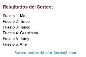 Lista de participantes: Tomy, Tango, Turco, Guusfraba, Ariel, Mat.