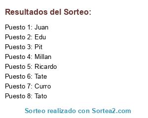 Lista de participantes: Pit, Juan, Millan, Curro, Tate, Tato, Lucas, Ricardo, Edu.