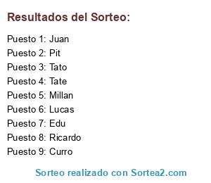 Lista de participantes: Ricardo, Pit, Juan, Curro, Edu, Tate, Tato, Millan, Lucas.