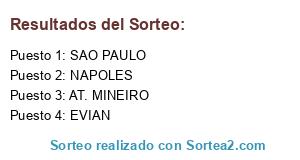 Lista de participantes: AT. MINEIRO, SAO PAULO, EVIAN, NAPOLES.