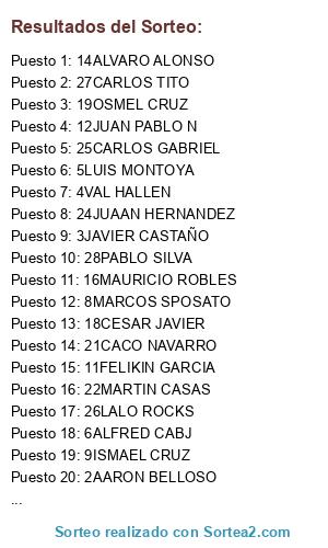 Resultados del sorteo: