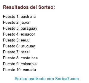 Lista de participantes: brasil, paraguay, uruguay, ecuador, colombia, eeuu, costa rica, canada, japon, australia.