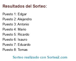 Lista de participantes: Alejandro, Antonio, Edgar, Eduardo, Isauro, Mario, Ricardo, Tomas.