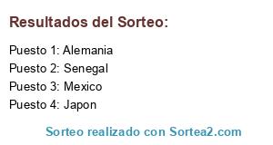 Lista de participantes: Alemania, Senegal, Mexico, Japon.