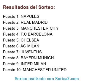Lista de participantes: F.C BARCELONA, REAL MADRID, BAYERN MUNICH, INTER MILAN, JUVENTUS, NAPOLES, AC MILAN, MANCHESTER CITY, MANCHESTER UNITED, CHELSEA.