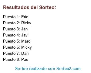 Lista de participantes: Jan, Javi, Dani, Eric, Ricky, Marc, Pau, Micky.