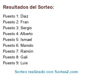 Lista de participantes: Manolo, Luis, Diaz, Fran, Ismael, Ramón, Sergio, Gali, Alberto.