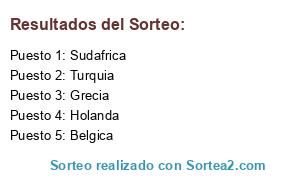 Lista de participantes: Porugal, Holanda, Inglaterra, Brasil, Grecia, Camerun, Sudafrica, R.checa, Turquia, Belgica.