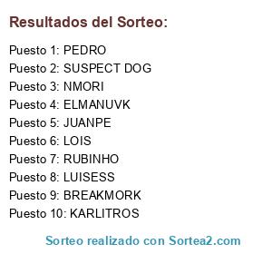 Lista de participantes: JUANPE, LOIS, NMORI, BREAKMORK, SUSPECT DOG, ELMANUVK, PEDRO, RUBINHO, LUISESS, KARLITROS.