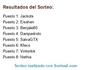 Lista de participantes: Jackots, Benjale80, Danipedrolo, Eisshen, Nethia, SalvaGTX, Vintorlok, Kfeco.
