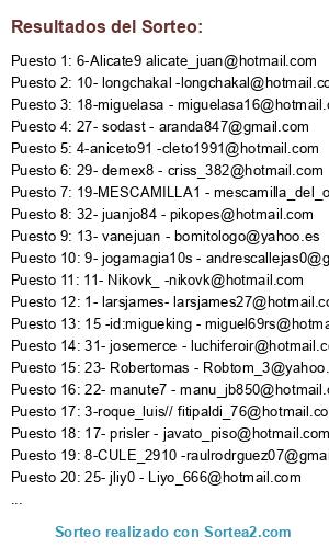 - Puesto 16: 22- manute7 - manu_jb850@hotmail.com