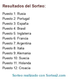 Resultados del sorteo: