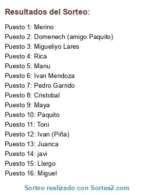 Resultados del sorteo: