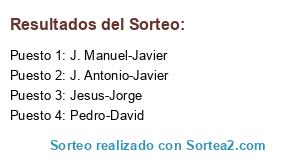 Lista de participantes: J. Antonio-Javier, Pedro-David, Jesus-Jorge, J. Manuel-Javier.