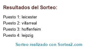 Lista de participantes: leipzig, villarreal, leicester, hoffenfeim.