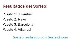 Lista de participantes: Rayo, Barcelona, Juventus, Villarreal.