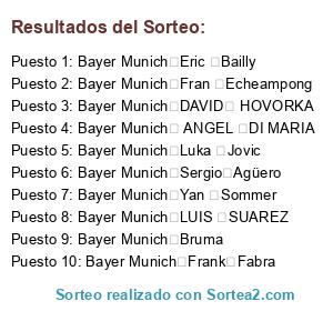 Lista de participantes: Bayer Munich Dominik livakovic, Bayer Munich Eric Bailly, Bayer Munich Fran Echeampong, Bayer Munich Sergi Aurier, Bayer Munich MARC CUCURELLA, Bayer Munich Alex Teixeira, Bayer Munich LUIS SUAREZ, Bayer Munich ANGEL DI MARIA, Bayer Munich Marco Reus, Bayer Munich Yan Sommer, Bayer Munich Thomas Delaney, Bayer Munich Samuel Umtiti, Bayer Munich Kevin Mbabu, Bayer Munich Marcus Wendel Valle da Silva, Bayer Munich James forrest, Bayer Munich Frank Fabra, Bayer Munich DAVID HOVORKA, Bayer Munich Luka Jovic, Bayer Munich Stephan El Shaarawy, Bayer Munich Bruma, Bayer Munich Sergio Agüero.