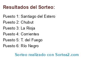 Lista de participantes: T. del Fuego, Río Negro, Chubut, Corrientes, La Rioja, Santiago del Estero.