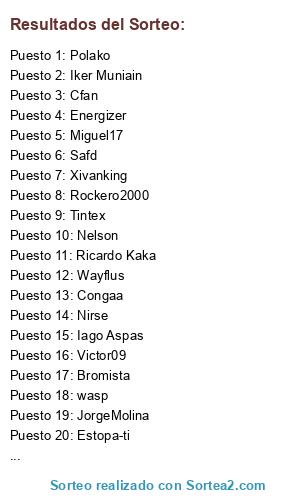 Lista de participantes: Estopa-ti, Congaa, Polako, Lol, Cody, Bromista, Taka, Duo, Goku, Wayflus, Krasic, OliverAtom, Adrover, Iago Aspas, Nelson, Kevin Doyle, Pablete007, JorgeMolina, Rockero2000, Rodergas, Ricardo Kaka, Safd, Miguel17, AsierVivaGaliza, Soarin, Jito, Energizer, Victor09, Xivanking, Tintex, Cfan, Jorgele, Nirse, wasp, Iker Muniain, Pablo.