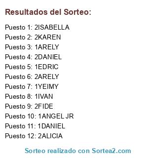 Resultados del sorteo: