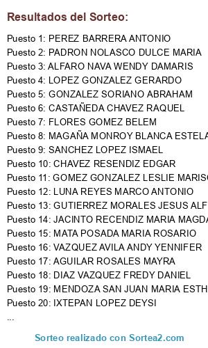Lista de participantes: TELLEZ LIZARRAGA DELIA, TELLEZ VELAZQUEZ JAVIER, LOPEZ RIBERA MARTHA ISABEL, REYES ITURBIDE HERMILO, LEON CHAVEZ MARISOL, OSORNIO ALEJANDRE IRMA, REYES LOPEZ FERNANDO, PADILLA SANCHEZ MARIO, PEREZ PINTO MAURO, MARTINEZ BARRERA AMERICA, CERON NAVA MIGUEL, HERNANDEZ HERRERA SILVIA, VARGAS HERNANDEZ BLANCA ESTELA, GONZALEZ SOTO MARIA DE LA LUZ, AMEZQUITA EMMA, RAMIREZ SANCHEZ DAMIAN MIGUEL, CUAMATZI CHAVARRIA NORMA SELENE, HERNANDEZ TRUJILLO SILVANA, SANCHEZ OTERO GUILLERMO, LUCIO GARCIA RICARDO, GARCIA VILLA GRACIELA, GALVAN HERNANDEZ ERUDIN, MEDINA GERARDO ELIZABETH, UGARTE SILVA MARIA DEL PILAR, ZEFERINO VILLEGAS MARIBEL, AVILA FUENTES JUAN CARLOS, TECPA SANCHEZ MARIBEL, MUCIÑO ESQUIVEL CENDI, SUAREZ HERNANDEZ ROGELIO, RODRIGUEZ FLORES MARIA ISABEL, MAGALLAN AGUILAR GABRIELA, PATRICIO GONZALEZ RAMON, ESCOBAR GONZALEZ ELIZABETH, NUÑEZ CARMONA SUSANA, RANGEL GONZALEZ ALICIA, ROMERO GONZALEZ FRANCISCO RAMON, LANDAVERDE ARREDONDO LILIANA NOEMI, VELAZQUEZ JUAREZ CATALINA, REYES CORDOVA JOSE OSCAR, CISNEROS LOPEZ MARTHA, JIMENEZ POBLANO JUAN ANTONIO, MEJIA VAZQUEZ MARIA JUANA, LOPEZ CASTAÑEDA JOSE MANUEL, PACHECO AGUILAR AARON, GARCIA SANCHEZ VERONICA, MORALES MORALES SARA, DURAN MIRANDA YOLANDA, SOLIS MENDOZA VICTOR, RODRIGUEZ GONZALEZ ELIA, MONDRAGON LICEA LETICIA, MARTINEZ RODRIGUEZ VERONICA, MENDOZA SAN JUAN MARIA ESTHER, ZAMORA VELASCO ERNESTO, VAZQUEZ OROPEZA ELIZABETH, OLIVARES MARTINEZ ABEL, SANTILLAN VILLAR DOLORES ROSA MARIA, REYES SOSA IRMA CAROLINA, VASQUEZ GARCIA MA DOLORES, AMADOR CARREON ROSA ALBA, MARTINEZ MAGALLON PABLO, MATURINO SEGURA IVONNE, MURILLO HERNANDEZ RICARDO, QUINTERO HERNANDEZ GUILLERMO, GARCIA MATURINO ANA, GRANADOS NORIA CIRILA, BAUTISTA REYES MARIA LUISA, HERNANDEZ DEL ANGEL ALONSO, HERNANDEZ RAMIREZ CLAUDIA GABRIELA, OLEA LOPEZ MARICELA, HERNANDEZ HERNANDEZ ALMA DELIA, HERNANDEZ SERRALDE ALMA EDITH, ALQUICIRA ROJAS ALMA PATRICIA, TRUJILLO FONSECA GABRIELA, NAVA MORALES MARIA MAGDALENA, BAEZ HERNANDEZ MA GUADALUPE, RIVERO GOMEZ GABRIELA, HERNANDEZ MEDINA VIRGINIA, HERNANDEZ ORTIZ MARIA BERTHA, GARCIA RAMIREZ CRISTINA, PADRON NOLASCO DULCE MARIA, RAMIREZ SORIANO BERENICE, BETAN GONZALEZ LETICIA, RIOS MARCOS NANCY, PEREZ BARRERA ANTONIO, IBARRA VASQUEZ MA MARIA, APARICIO MARTINEZ LAURENCIA, MENDIETA VELAZQUEZ VIRGINIA, HERNANDEZ QUINTERO AMALIA, RIVERA FLORES PATRICIA, BALDERAS PADILLA ADELA, MARTINEZ OLIVARES CLAUDIA ANDREA, ZEPEDA ESTRADA CRISTINA, REYES OLVERA MARIA GUADALUPE, HERNANDEZ CONTLA EDUARDO ISRAEL, SANCHEZ PACHECO ALMA DELIA, GRANADOS MARES MARTHA ALICIA, RIOS AGUILA GUADALUPE, VELAZQUEZ RIVERO MARIA DE LOURDES, PAREDES ZAMUDIO ISMAEL, LOPEZ LARA MAGDALENA, PILAR GARCIA JOCELYN MARIANA, MENDEZ ABONCE LUIS, PEREZ MONROY MARIA GUADALUPE, SANCHEZ RODRIGUEZ MARCO ANTONIO, LAZCANO LEON JOSE FRANCISCO, AMAYA TELLEZ HORTENSIA, CASTILLO LIMONES GUILLERMINA, GUTIERREZ ALVARO IRMA YOLANDA, HERNANDEZ AGUILAR MARCO ANTONIO, MORALES TOLEDANO DINORA ELIZABETH, GOMEZ ORTEGA SILVIA, MARTINEZ PIÑA JUAN GABRIEL, REYES GONZALEZ EDUARDO, DE JESUS MARTINEZ NANCI, BUCIO PEREZ MARIA VERONICA, RAMIREZ TORIBIO NANCY NAYELI, AVILA VAZQUEZ ANA LIDIA, SERRALDE GALICIA MAYRA, ROA URIBE JULIETA, RAMOS MORALES MARIA DEL ROCIO, ROSALES MARTINEZ OFELIA, HERNANDEZ ROMERO GABRIELA, GARCIA SANCHEZ MARISOL, JAIME CONTRERAS MARIA GUADALUPE, CALDERON VILLEGAS PATRICIA, RAMIREZ GARCIA NICOLAS, TAPIA DURAN LIDIA, RUIZ REYES CECILIA, DAVILA ROSALES MARIA JUANA, CARO OLOARTE SOFIA, PATRICIO GONZALEZ FIDEL ARTURO, AVENDAÑO CRUZ RICARDO-, HERNANDEZ PEREZ JORGE, HERRERA CRUZ RAMIRO, JIMENEZ CARACOZA MARCELA, MONTERO ALVARADO ROBERTO JAFRET, SOLARES LIRA ROSA ANA, NUÑEZ CARMONA LAURA, FLORES GARCIA HUMBERTO, MARTINEZ TREJO NAYELI, ROMERO RODRIGUEZ ANA, AGUILAR ESCOBAR MARIA DEL CARMEN, RODRIGUEZ RIVERA MATEO, VENTURA CUENCA MIGUEL ANGEL, GALLEGOS MENDOZA MARTHA, REYES PEREZ MARIA GABRIELA, GUERRERO ESTRADA ERIK, IRINEO DE JESUS ELIA, LEON CUESTAS MA GUADALUPE, ELIZALDE POMPA RAYMUNDO BALTASAR, SILVA MORAL MARIA DEL ROSARIO, JUAREZ HERNANDEZ MARIA ROSARIO, PEREZ BRINDIS MARIA ESTHER, MONZALVO GUTIERREZ MARIA DE LOS ANGELES, ROUSSEL ESPINOZA DANIEL, MARTINEZ SANCHEZ MARIA DEL SOCORRO, SANTIAGO BELTRAN YAZMIN VICTORIA, ORTIGOZA HERNANDEZ SOCORRO, ARROYO PEREZ JUAN MARTIN, ANGELES MONDRAGON MARIA DE LA LUZ, VAZQUEZ GOMEZ ADRIANA, NIETO RODRIGUEZ ALMA EDITH, RODRIGUEZ HERNANDEZ JESUS MARIO, FLORES ROSAS BEATRIZ, ROSAS MIRANDA ALMA LIZETH, HERNANDEZ PEREZ FRANCISCO, MARTINEZ OLIVARES JUAN JOSE, GOMEZ MONDRAGON MA CONCEPCION, VERA CRUZ RUBEN, JERONIMO JUAREZ YOLANDA, HERNANDEZ MARTINEZ MARIA DEL CARMEN, GOMEZ AGUILAR EDGAR IVAN, PEREZ JIMENEZ ISRAEL, GARCIA MARTINEZ ROMEO, GARCIA BAUTISTA ANA MARIA, SANTANA AGUILAR MARIO, NOLASCO BUSTAMANTE ANA LAURA, RAMIREZ CHAVEZ DAVID JAIME, RIOS MARCOS AURORA, HERNANDEZ UBANDO YANET VIRIDIANA, COOK DIAZ EDGAR, MARTINEZ PEÑA VERONICA, MORALES HERNANDEZ FRANCISCO, ESTEVEZ HERNANDEZ LILIAN YAHABRID, PEREZ MARIA DEL CARMEN, RAMIREZ MENDEZ DORA, FRANCISCO RANGEL ARACELI, ROSALES MERCADO MARIA FELIX, NAVA LARA ZEIDA, CORTES BARRIENTOS EVANGELINA, MENCHACA GRANADOS SILVIA ANDREA, BAUTISTA HERNANDEZ MIRIAM NOEMI, CRUZ ARGUEYES HORTENCIA JAZMIN, MORENO MONTES MIREYA MILKA, FLORES GARCIA ROSALINDA, GONZALEZ GARCIA MARIA SELENE, VALVERDE NUÑEZ SUSANA, MOLINA AGUILERA MARISOL, TORRES MENDOZA ELVIA, ORDUÑA MARTINEZ MARGARITA, LEYVA MARTINEZ MARIA DEL ROSARIO, MEZA PENAGOS DAVID ADRIAN, GARCIA ZAVALA ANABEL, IBARRA OLGUIN GUILLERMINA GUADALUPE, GONZALEZ TELLEZ ROSA, FLORES MANCHA JOSUE GENARO, MARTINEZ CAMPOS ANGEL, LUCAS SALAS CRISTINO, CONTRERAS LEON CLAUDIA, TELESFORO CASTELAN DANIEL, VAZQUEZ GALINDO INGRID PERLA LUCRECIA, DE JESUS GUZMAN ROSALIA, JIMENEZ ANGUIANO PATRICIA, RIZO BARRERA PEDRO, VELAZQUEZ PIÑA ROSA MARIA, TORRES FLORES ARMANDO SANTIAGO, RAMIREZ AVILA MARIA ISABEL, TRINIDAD HERNANDEZ ARACELI, CHAVEZ PADILLA ARACELI, ESPINOSA LUNA LUIS ENRIQUE, ROSALES CRUZ JUAN LUIS, RANGEL GARZA ALEJANDRO ENRIQUE, GALICIA GUTIERREZ JUAN JOSE, 
