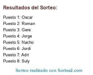 Lista de participantes: Jordi, Jorge, Roman, Gere, Nacho, Suly, Oscar, Adri.