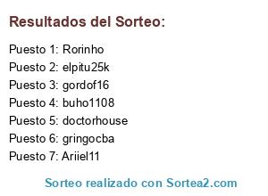 Lista de participantes: Ariiel11, buho1108, doctorhouse, elpitu25k, gordof16, gringocba, Rorinho.