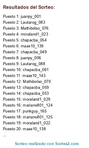 Resultados del sorteo: