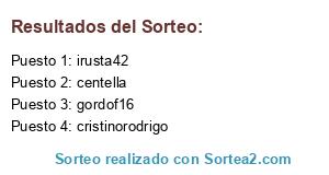 Lista de participantes: centella, irusta42, cristinorodrigo, gordof16.