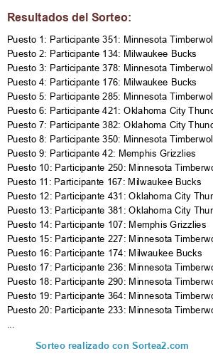 - Puesto 1: Participante 351: Minnesota Timberwolves