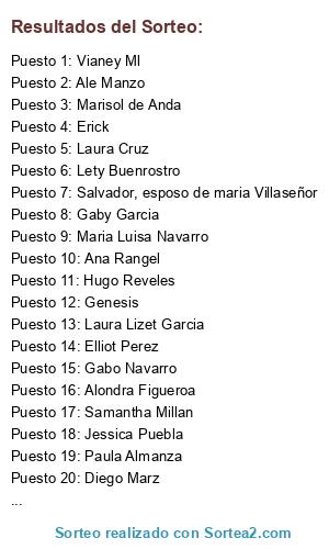 Lista de participantes: Lety Buenrostro (2 participaciones), Elliot Perez (9 participaciones), Laura Lizet Garcia, Rebeca Lomeli, Ana Claudia Muñoz, Yessica Vazquez (2 participaciones), Nidia Ramirez, Marisol de Anda (7 participaciones), Diego Marz, Paula Almanza, Susana Rodriguez, Jessica Puebla, Hugo Reveles, Genesis (6 participaciones), Salvador, esposo de maria Villaseñor, Maria Luisa Navarro (2 participaciones), Bryan Ismael Sanchez, Telvi Garcia, Diana Torres, Gaby Garcia, Alberto Avila, Kriz Olvera, Berenice Alatorre, Edgar Robles, Chef Ernesto Gutierrez, Ismael Cervantes, July Mavis, Ale Manzo, Tavo Marquez, Vianey L. Araiza, Yohii Lopez, Erick, Ana Rangel, Vianey Ml, Malu Valadez, Beto Valadez, Lola lluvia (2 participaciones), Miguel Angel Rodriguez, Mari Rodriguez, Samantha Millan, Sandra Yael, Alondra Figueroa, Alfonso Avila (3 participaciones), Luis Alvarado, Gabo Navarro, Alex Lara, Gisela Villegas, Mayela Zamora, Ramon Hernandez, Fernanda Gonzalez, Martha Yolanda Hernandez, Fernanda Vazquez, Laura Cruz, Azul, Kat Arreaga, Laura Avila (4 participaciones), Dora Villanueva, Poncho Nuñez, Mamá de Edwges Chavez.