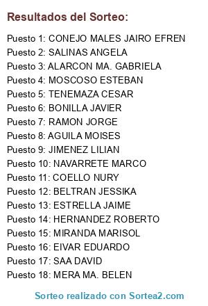 Lista de participantes: AGUILA MOISES, ALARCON MA. GABRIELA, BELTRAN JESSIKA, BONILLA JAVIER, COELLO NURY, CONEJO MALES JAIRO EFREN, EIVAR EDUARDO, ESTRELLA JAIME, HERNANDEZ ROBERTO, JIMENEZ LILIAN, MERA MA. BELEN, MIRANDA MARISOL, MOSCOSO ESTEBAN, NAVARRETE MARCO, RAMON JORGE, SAA DAVID, SALINAS ANGELA, TENEMAZA CESAR.