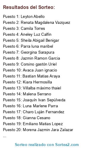 sorteados del grupo 25 primeros lugares más 5 en lista de espera