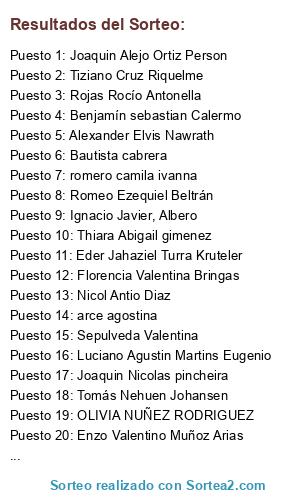 sorteados del grupo 25 primeros lugares más 5 en lista de espera