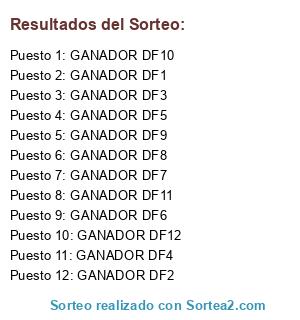 Lista de participantes: GANADOR DF1, GANADOR DF2, GANADOR DF3, GANADOR DF4, GANADOR DF5, GANADOR DF6, GANADOR DF7, GANADOR DF8, GANADOR DF9, GANADOR DF10, GANADOR DF11, GANADOR DF12.