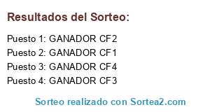Lista de participantes: GANADOR CF1, GANADOR CF2, GANADOR CF3, GANADOR CF4.
