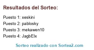 Lista de participantes: pablosky, JagbElx, xeskini, mekawen10.