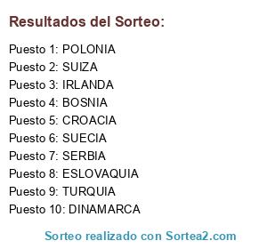 Lista de participantes: CROACIA, TURQUIA, ESLOVAQUIA, BOSNIA, SUIZA, POLONIA, IRLANDA, SUECIA, DINAMARCA, SERBIA.