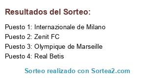 Lista de participantes: Olympique de Marseille, Internazionale de Milano, Real Betis, Zenit FC.
